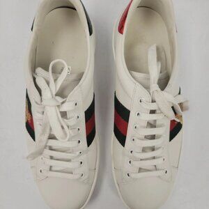 (65361-1) Gucci White Bee Runner Shoes - Size 8 Men's