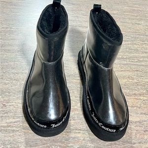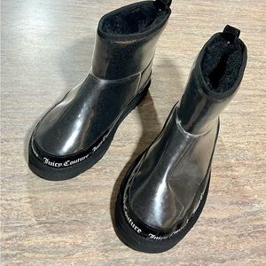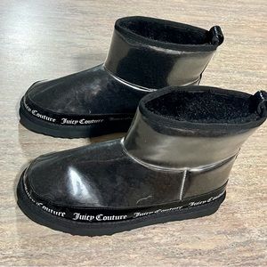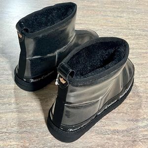 Juicy Couture clear rubber ankle boots with black faux fur