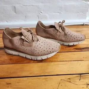 Pink leather perforated lace up comfort shoes. Thick sole with lots of cushion.