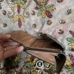 Dual sided, with coin purse to one side and cards/money holder on the other side.