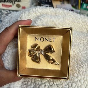 Monet brooch, Gold bowl with rhinestones in middle. Never removed from the box until pictures. Purchased at Macy’s possibly vintage
