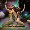 -A black, semi sheer fabric with shiny rainbow medusas 🌈✨🐍