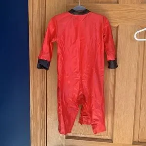 Official licensed Disney Costume, Incredibles toddler size 6-12 months. Faux leather, button in the bottom of the onesie and infant glasses. Worn once, slight discoloration on the top from washing leather but no other signs of wear.