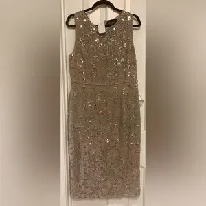 NWT Mac Duggal Sz 10 Formal Beaded Shift Dress, “Vintage Lilac” Mauve/Gray