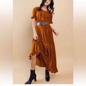 Textured Velvet Tiered Maxi Dress