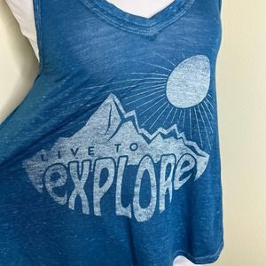 LOL Vintage Graphic Tank Top SMALL Live To Explore V-Neck Burnout Casual Summer