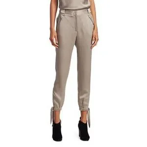 Women Halston SLIM Fit ANKLE TIE SATIN Pants Hook/Zip Fly Closure $295 B4HP