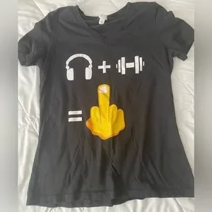 Women’s V-neck gym shirt. Perfect if you want a do not disturb kind of shirt. Worn few times, still in great condition.