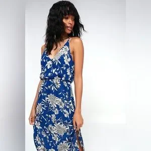Along the Waterway Blue Floral Print Midi Dress
