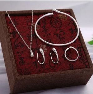 925 Sterling Silver Waterdrop Jewelry Set Bracelet Necklace Earrings and Ring