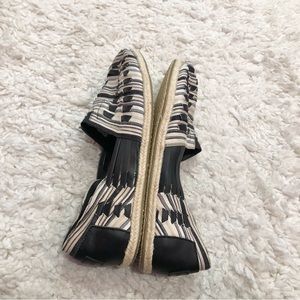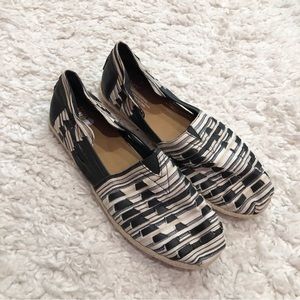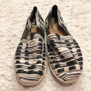 Toms Huarache Alpargata Woven Leather Espadrille Slip On Shoes Black White 12. In great condition