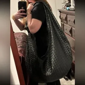 Authentic Bottega, Venetta, black, lambskin, leather Maxi Jodi intrecciato