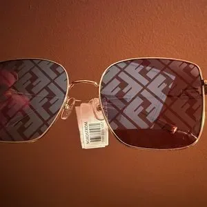 Fendi Baguette 59 mm FF Print Gold Square Frame with box and case