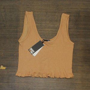 NWT Dkny Jeans Women's Cropped Ruffled-Hem Tank Top E22HAB35 XS Doe Brown