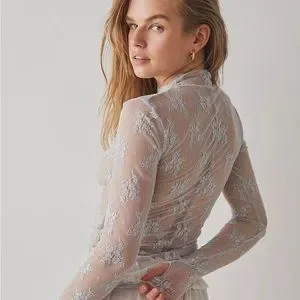 NWT, lace top, runs small, fitted, 85% nylon, 15% spandex, color is Moon Rock.
