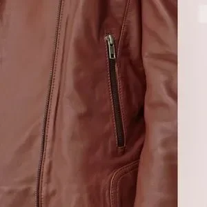 Reiss Cognac Brown Banksy Leather Biker Jacket