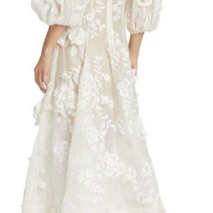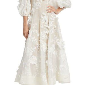 Zimmermann Postcard Appliqué Linen and Silk Dress AU 1