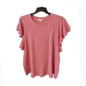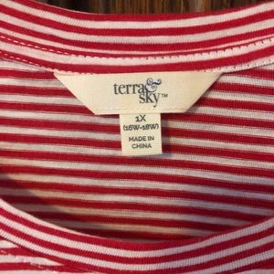 NWT terra & sky women’s T-shirt, pink and white stripe, fluffy sleeve, 1X
