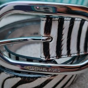 🏁 Michael Kors Zebra Print Dyed Cow Hair Belt - Size L