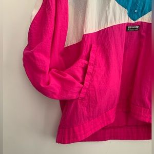 Y2K, 90s, running, jacket, windbreaker, neon, fluorescent, bright blue, bright pink, vintage, retro