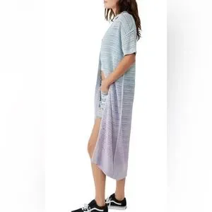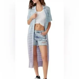 Dreamy ombré hues bring mesmerizing charm to this longline cardi knit with airy open stitching.