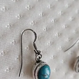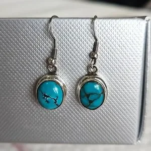 Beautiful turquoise set in sterling silver (see picture of earring loops for 925 silver hallmark).