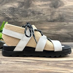 NIB Sorel Roaming Lace 8.5 Slingback Gladiator Flat Leather Sandals White Black
