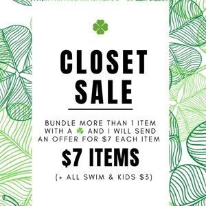 ☘️ MARCH SALE ☘️ - Add more than 1 item marked with a ☘️ to a bundle and I will send offers for $7 each item (this includes ALL SWIM) PLUS anything KIDS or Mia Collection jewelry is only $3! ☘️☘️☘️ Note: My closet will be on Vacation 3/17-3/19.