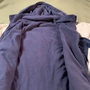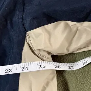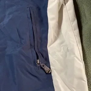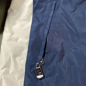 Excellent condition. No tags on it. Nylon with fleece lining. Zippered front pockets. Interior picket. Adjustable strings on bottom. Elastic and Velcro sleeve bands. No flaws, stains or smells.