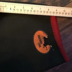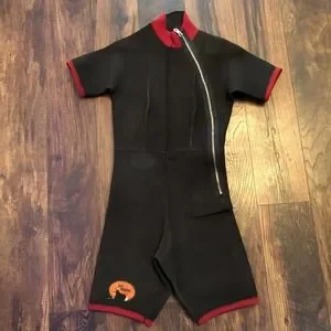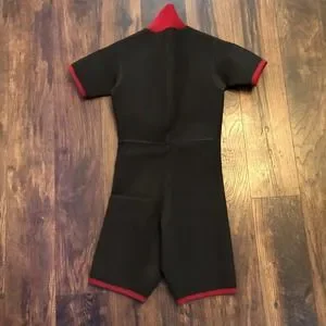 SKI WARM WETSUIT LARGE APPROX 26” WAIST 9” INSEAM ZIP UP WATER SKIING BLACK RED