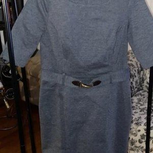 Sleek grey sheath dress with belt. Fitted with stretch sz 8