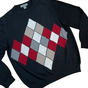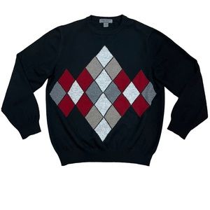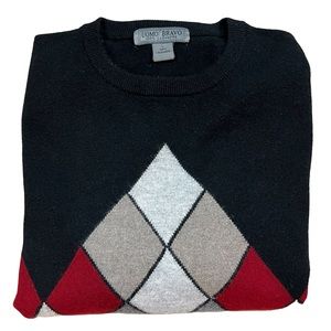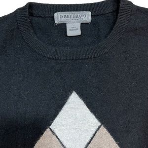 Men’s Uomo Bravo Cashmere Black Cashmere Argyle Pullover Sweater Men's Large