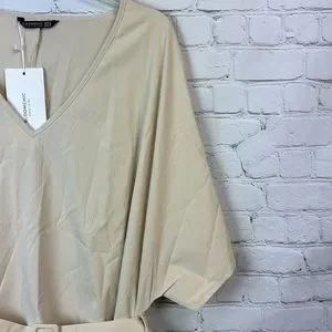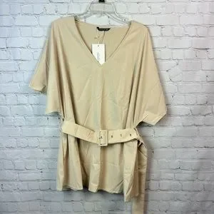 Nice Cream V Neck Belted Short Sleeve Top by BloomChic. Size 22/24 (3X)