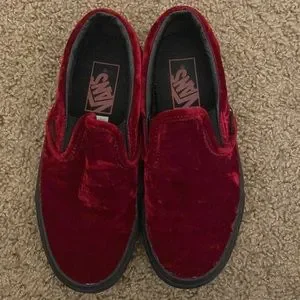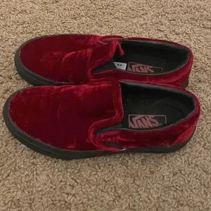 VANS red velvet slip ons size 5