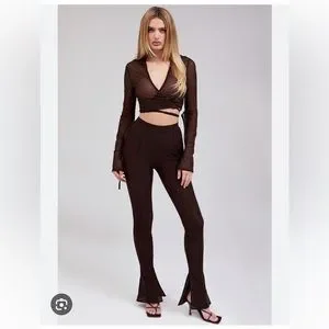 House of CB Mistress Rocks Calm Cocoa Mesh Set (Brown) Size XS