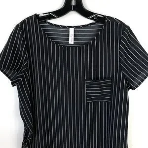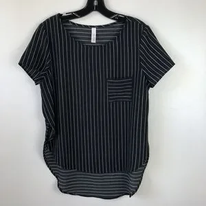 My Story Pocket Tee Womens S Short Sleeve Striped Hi-Lo Side Slits Lightweight