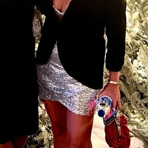 Short ruched tulip hem body con pencil mini skirt. Worn once to a holiday party last year. I paired with a sequined bra too and black blazer as pictures and listed in my closet. Super comfy and received lots of compliments!