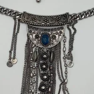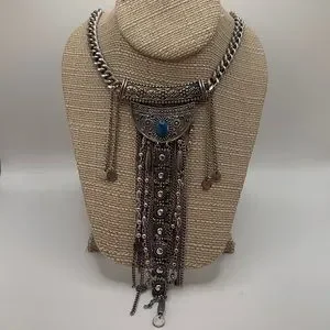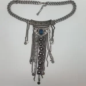 Beautiful Bohemian Silver-tone Chunky Necklace with a stone center and beautiful tassels