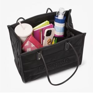 ♠️kate spade Ella Nylon Puffy Quilted Extra Large XL Tote Bag, Black NWT