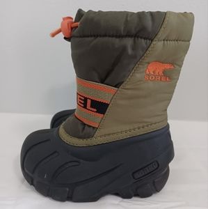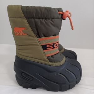 SOREL kids winter snow boots green orange size 6
