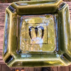 Vintage 50's Avocado Green Ashtray Marked Clayburn