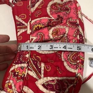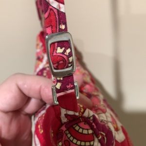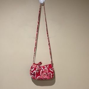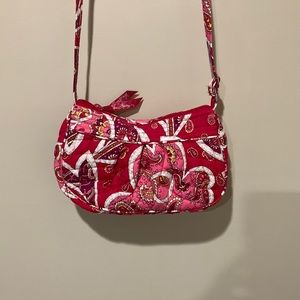 Top zipper. Long strap as a crossbody or has a buckle to adjust to shorter length. Used condition, but clean. No rips or tears.