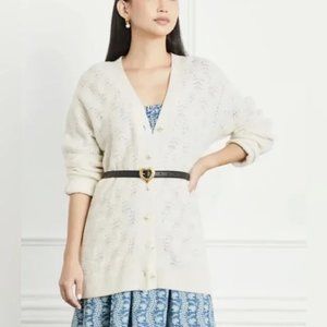 Hill House Merino Wool Simple Grandpa Cardigan Pointelle Knit Sweater in Navy L