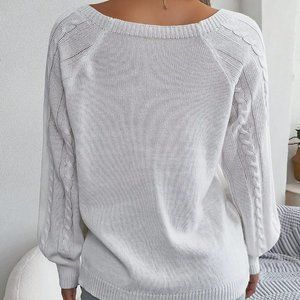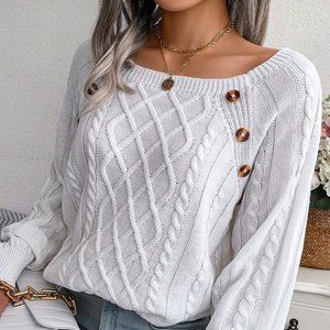 White Casual Womens Cable Knit Button Detail Raglan Sleeve Sweater