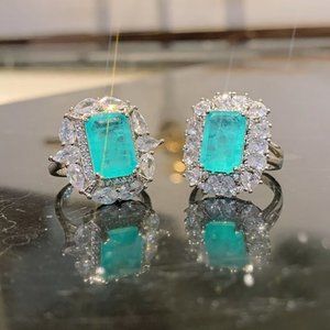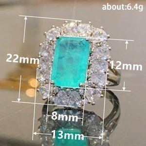 💕 925 Silver Exclusive Blue Emerald Cut Cubic Zirconia Ring, FB16FA1064