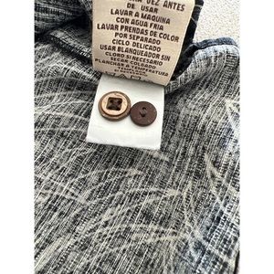 The shirt is in very good condition and comes with extra buttons. There is a small defect in the print which I’ve highlighted in the photo.