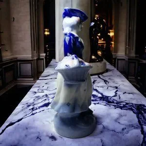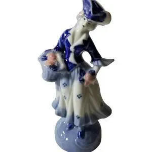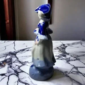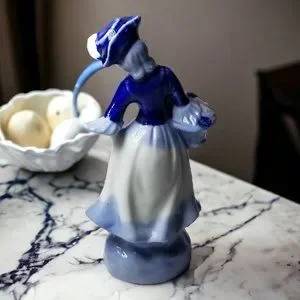 Vintage Blue & White Figurine Victorian Lady in Colonial Dress, Occupied Japan