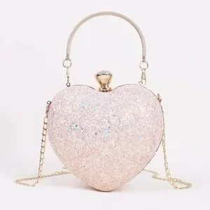 Mini glitter heart shaped clutch