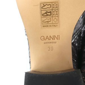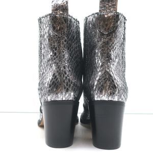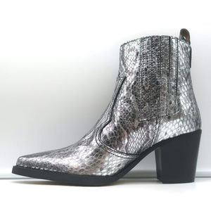 Ganni Callie Western Chelsea Boots Silver Metallic Snake-Print Leather Size 39