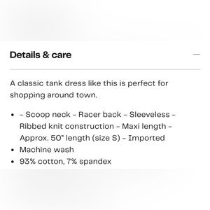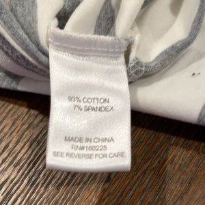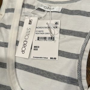 NWT Racerback tank dress by Stitchdrop. Super cute and comfortable. White with heather gray stripes. 93/7% cotton/spandex blend. Scoop neck, sleeveless and maxi length. Approx measurements are 16” armpit to armpit and 50” in length.